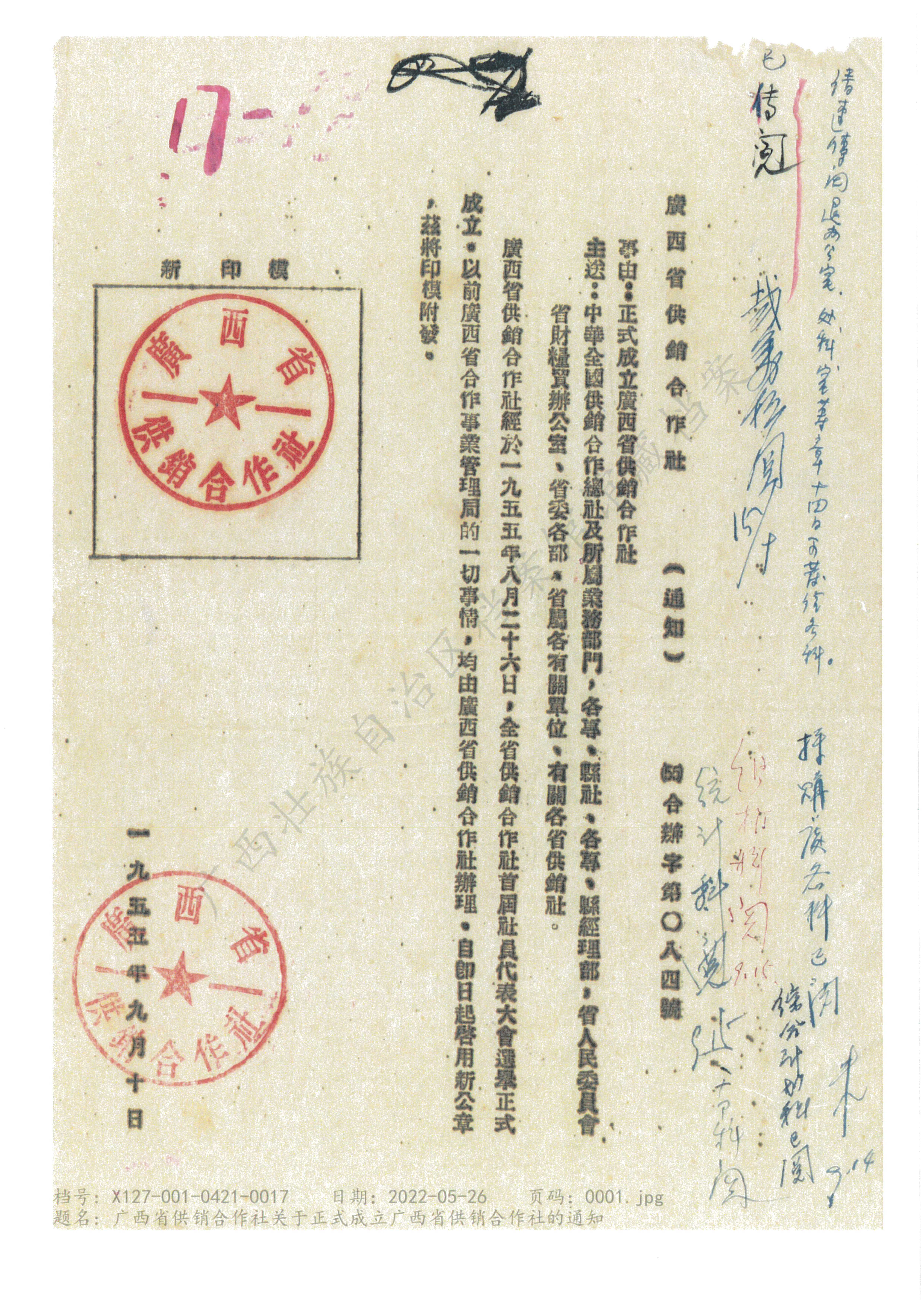 2.1955年正式成立广西省供销合作社的通知